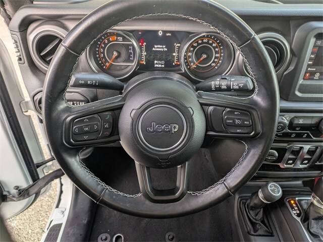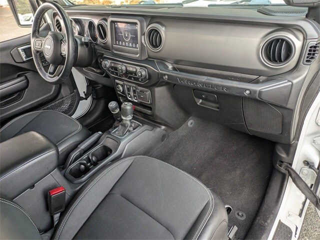 Certified Pre-Owned Gold Certified, ONE OWNER, LOW MILES, SERVICED AT DEALER, 7.0" Touchscreen Display, Air Conditioning, Air Conditioning w/Auto Temperature Control, Air Filtering, American Flag Decals, Apple CarPlay, Automatic Headlamps, Black Trail Rated Badge, Cluster 7.0" TFT Color Display, Deep Tint Sunscreen Windows, Delay-off headlights, Freedom Edition Interior Accents, Freedom Edition Package, Freedom Edition Swing Gate Plaque, Freedom Package Decals, Front 1-Touch Down Power Windows, Front fog lights, Front LED Fog Lamps, Google Android Auto, GPS Antenna Input, Integrated Center Stack Radio, Leather Seats w/Cloth Inserts (DISC), Leather Wrapped Steering Wheel, LED Headlamp & Fog Lamp Group, LED Premium Reflector Headlamps, Matte Black Jeep Badge, Oscar Mike Badge, ParkView Rear Back-Up Camera, Power Heated Mirrors, Premium Black Sunrider Soft Top, Quick Order Package 22F Freedom (DISC), Radio: Uconnect 4 w/7" Display, Remote Keyless Entry, Security Alarm, SiriusXM Satellite Radio, Speed control, Speed Sensitive Power Locks, Steel Front Bumper, Sun Visors w/Illuminated Vanity Mirrors, Technology Group, USB Host Flip, Wheels: 17" x 7.5" Painted Aluminum (DISC), Wrangler Decal.